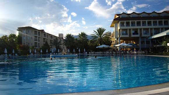 Vue de la piscine et sur l'hotel