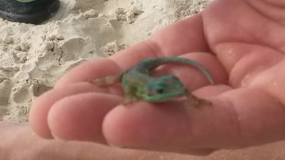 Gecko aus palme gefallen ..sehr farbenfroh