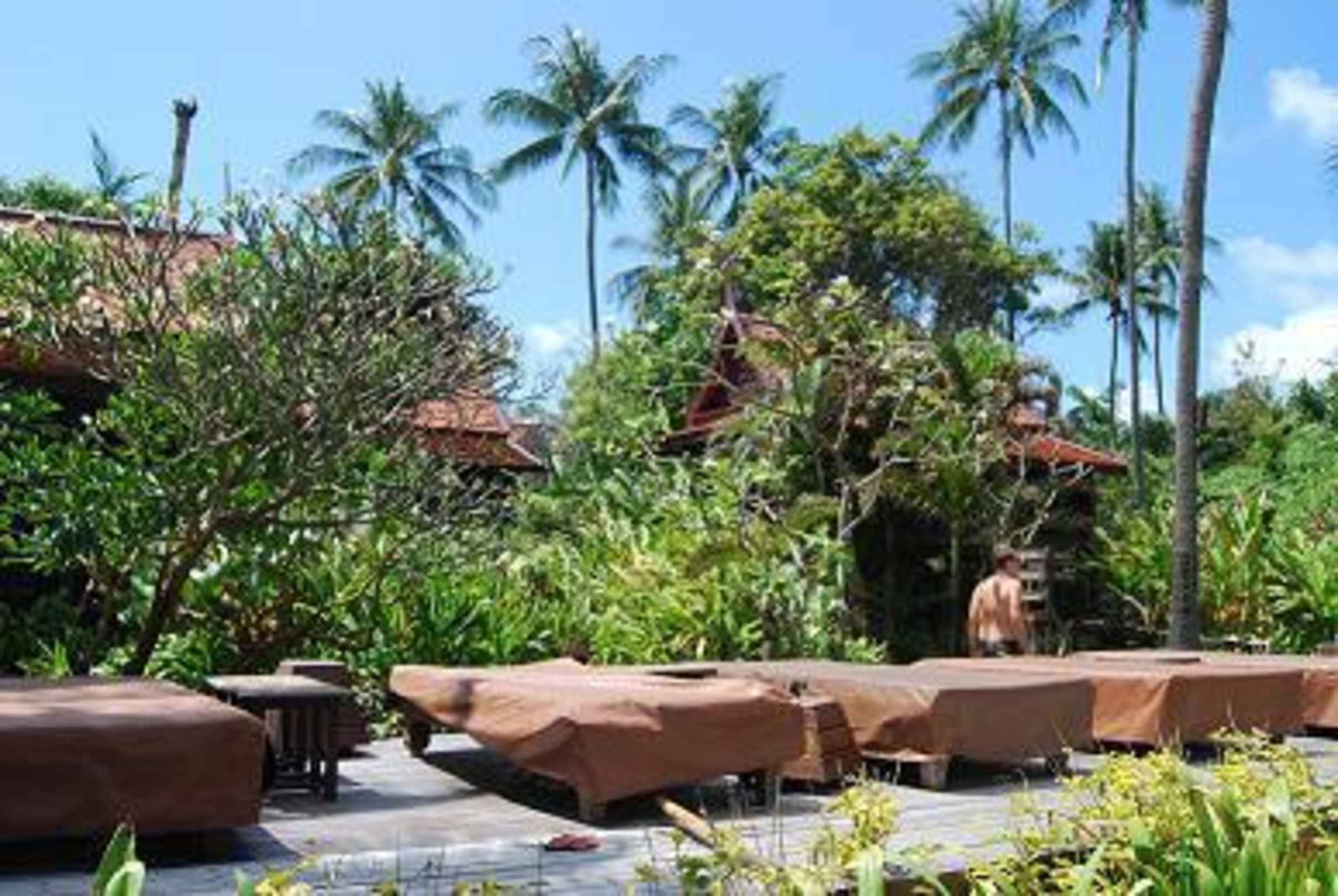 Blick vom Pool zur Garten- bzw. Villenanlage
