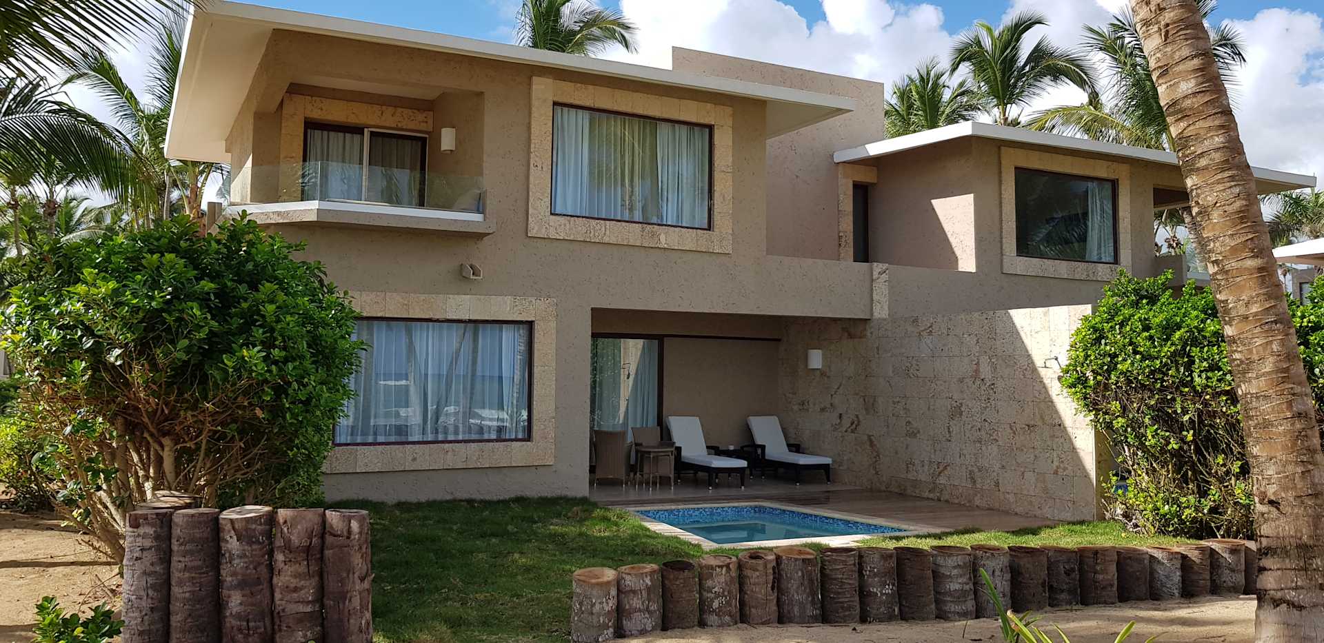 Vom Strand aus, unten private Pool und oben Ocean Front