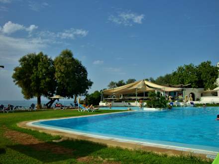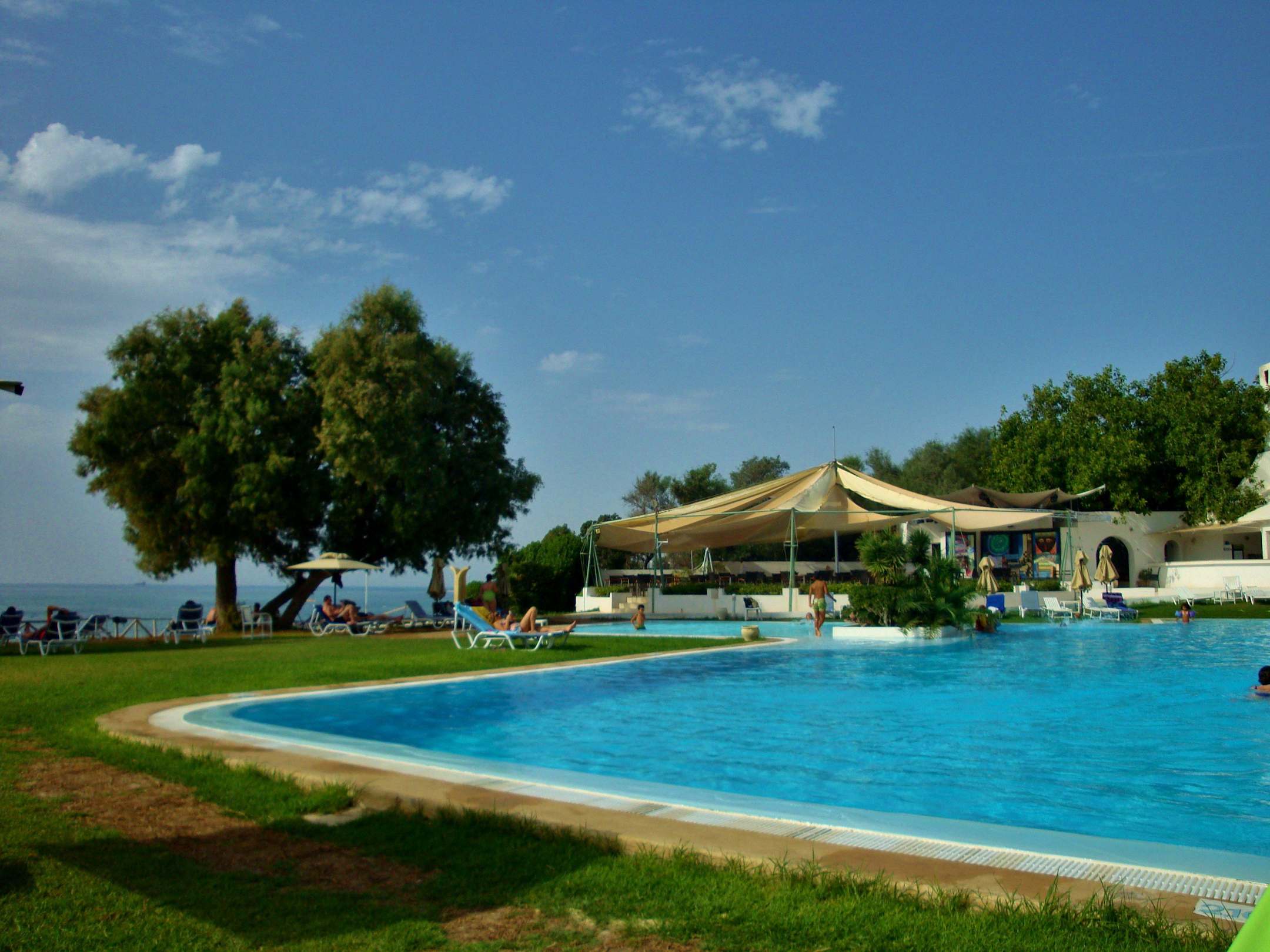 Piscine et restaurant/bar à l'arrière
