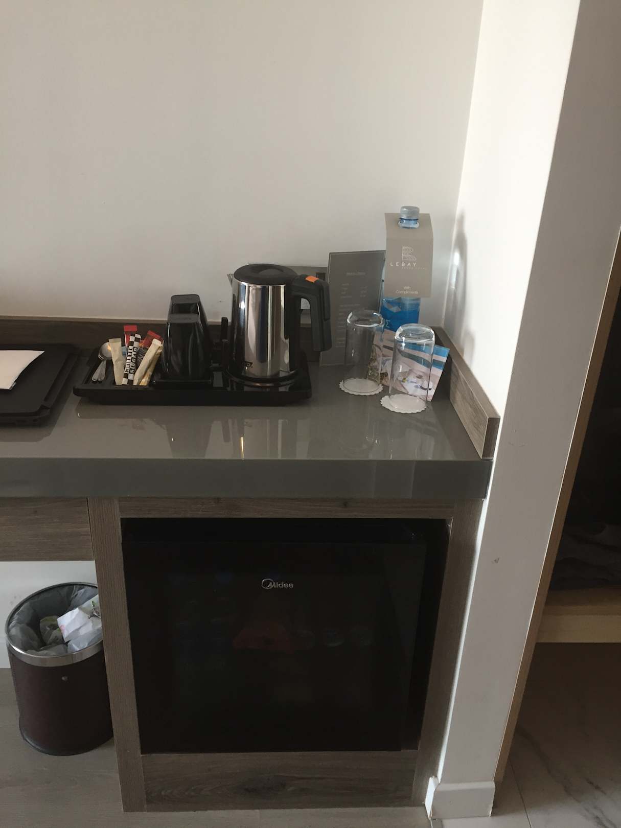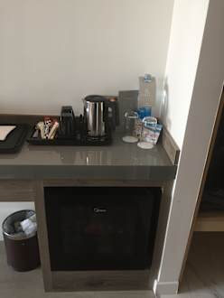 Zimmer Besitz Wasserkocher um Tee oder Kaffee zuzubereiten