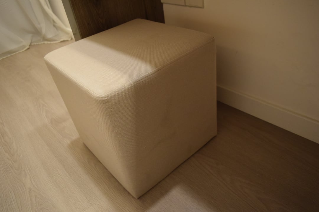 Hocker am Tisch. Leider kein Sessel (wie auf den offiziellen Hotelfotos gezeigt)