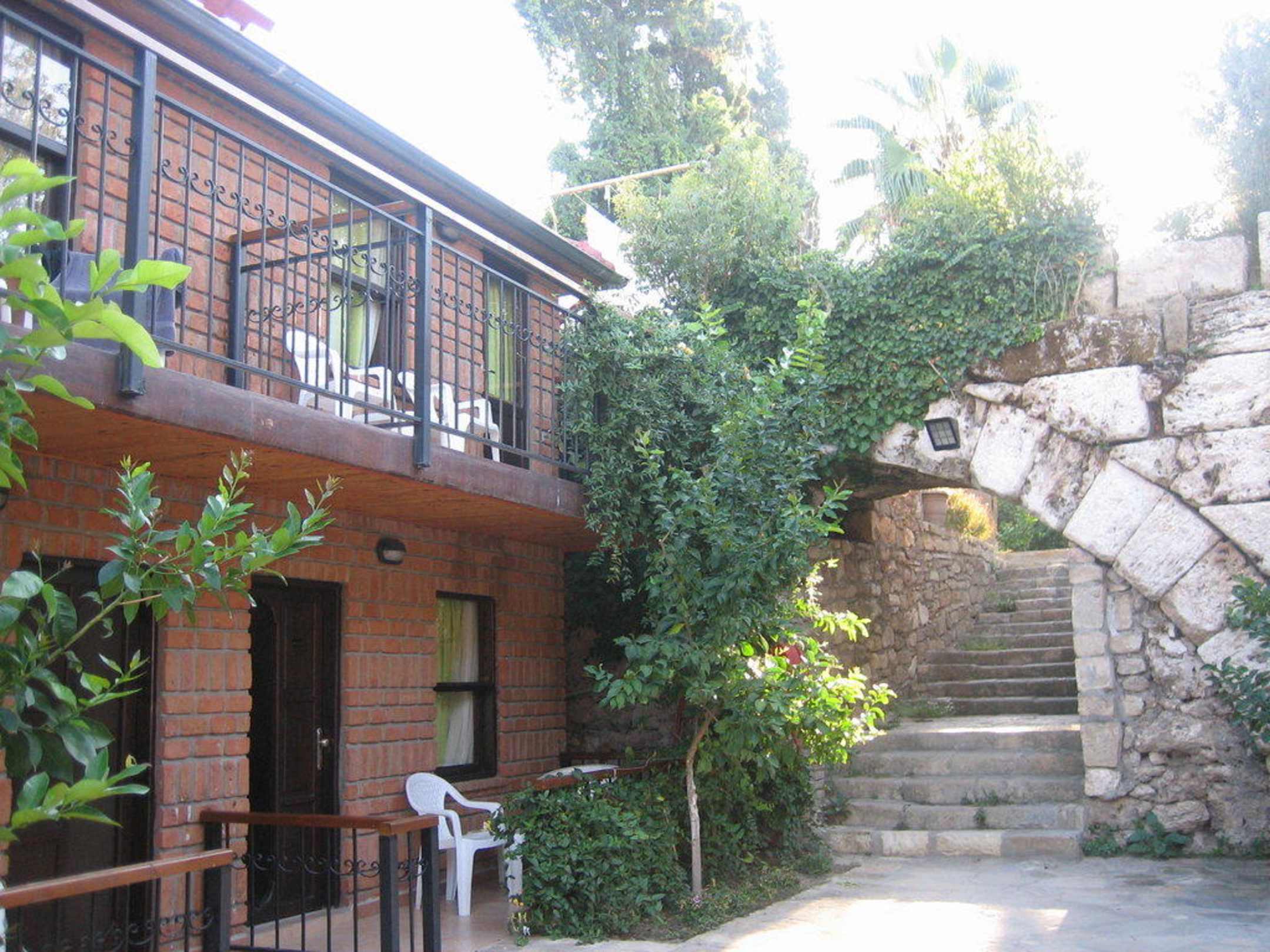 Treppe hoch durch den Bogen geht´s zum Pool und Restaurant, anderslang zum Strand.