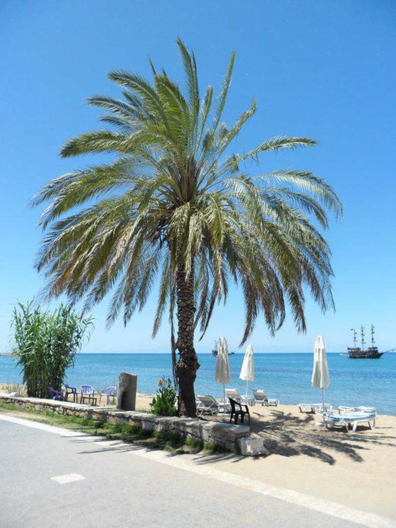 Nur hier: Eine große Palme am Strand