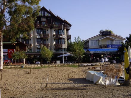 Vom Strand aus gesehen auf das Nachbarhotel und unser Leda Hotel.