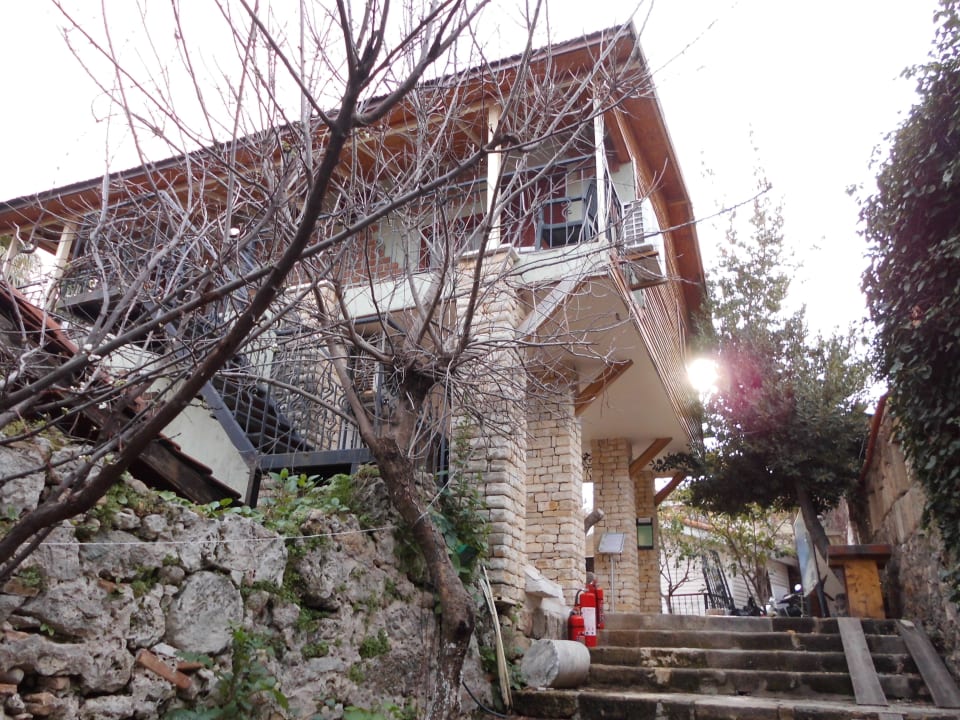 Rezeption unten, oben Zimmer