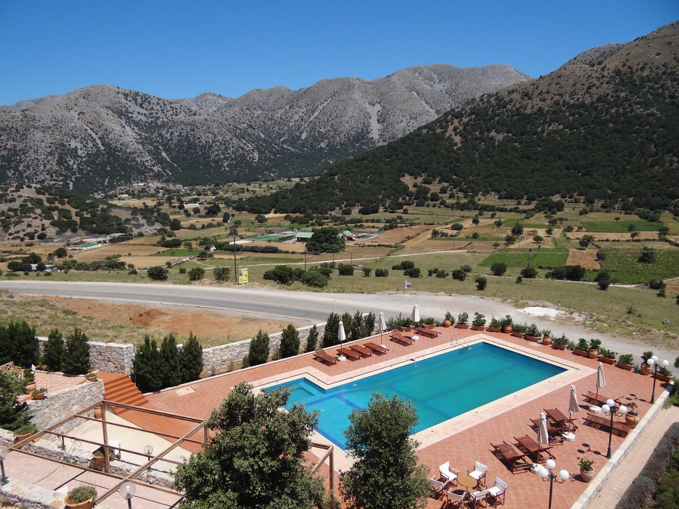 Blick über den Pool auf die Hochebene