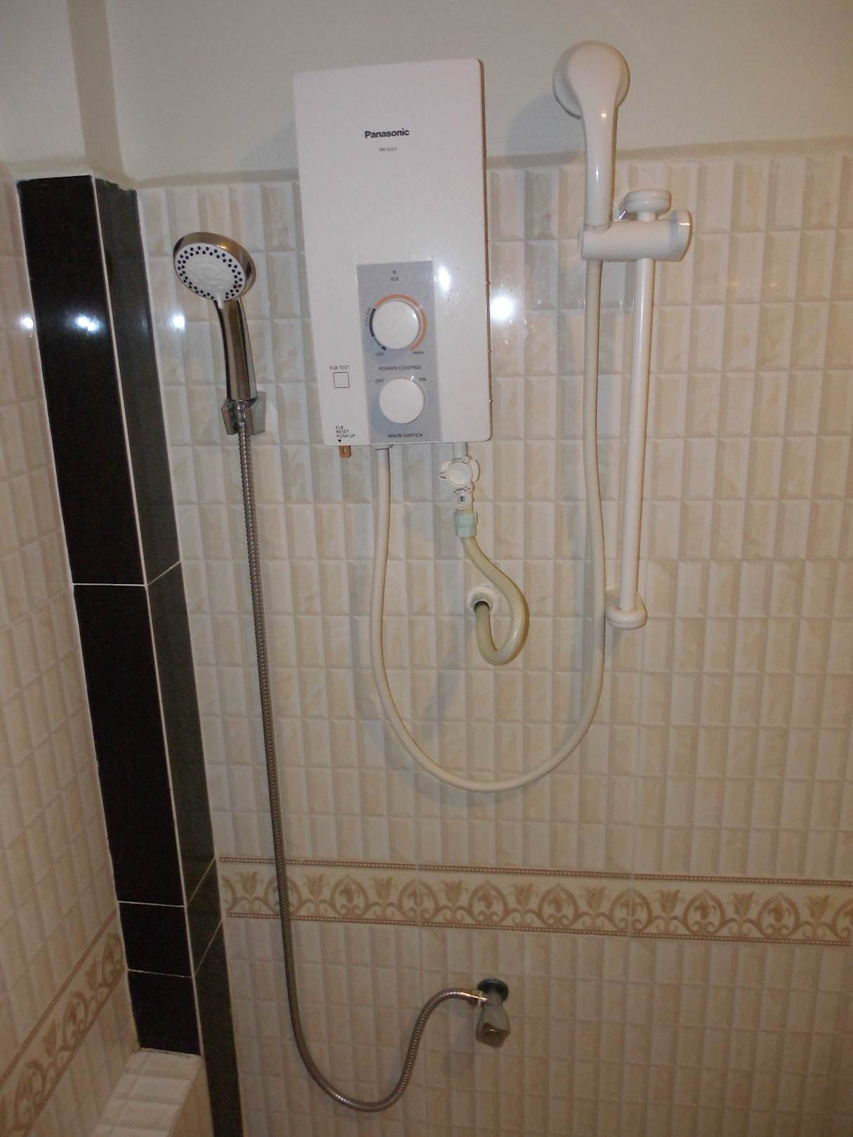 Zwei Dusche: eine für Kaltwasser und eine mit Durchlauferhitzer für Warmwasser.