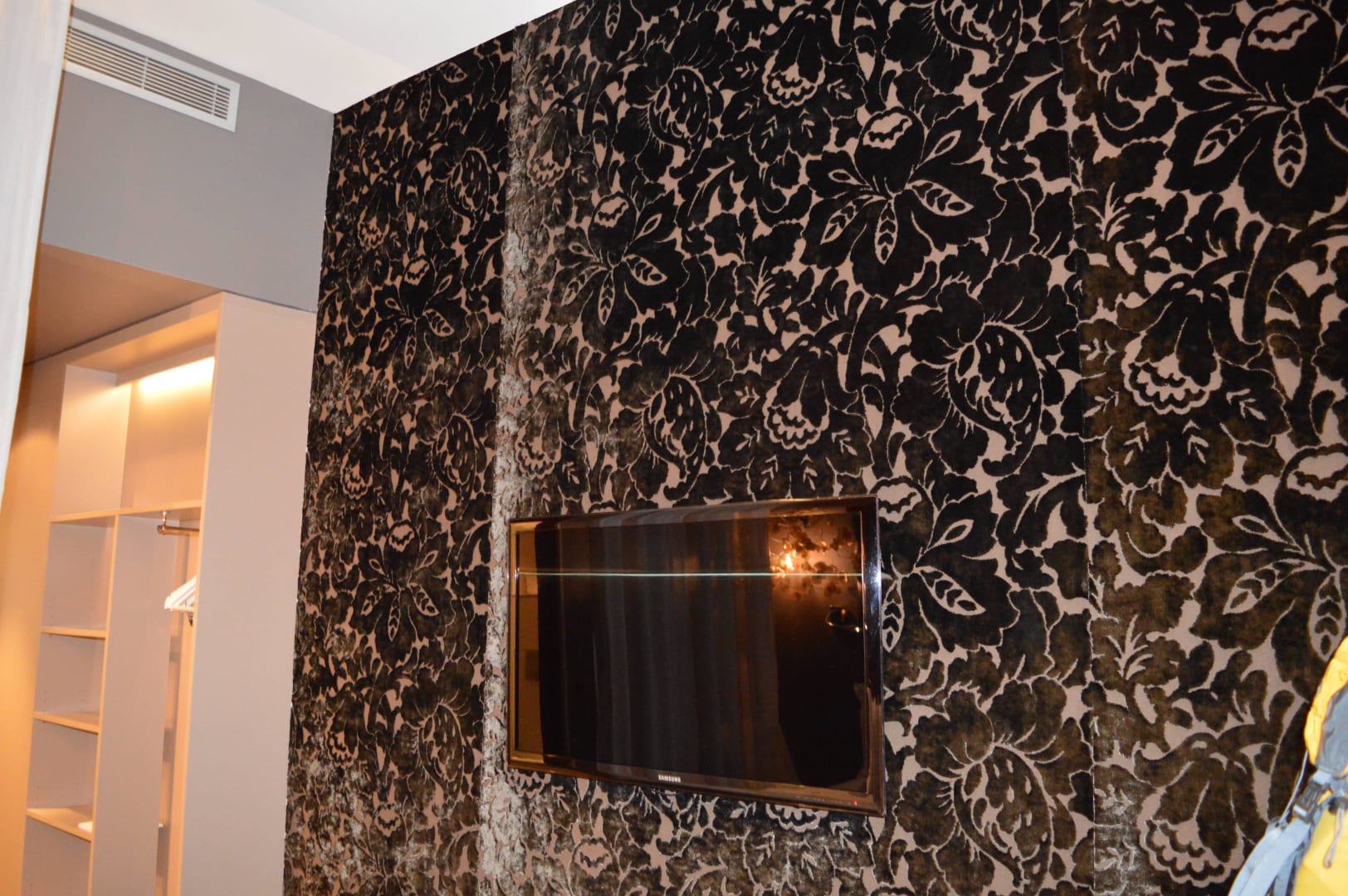 Sehr hübsche Stofftapete an der Wand