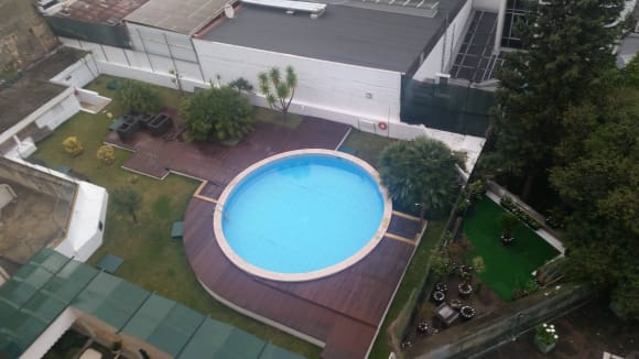 Poolblick aus dem Zimmerfenster
