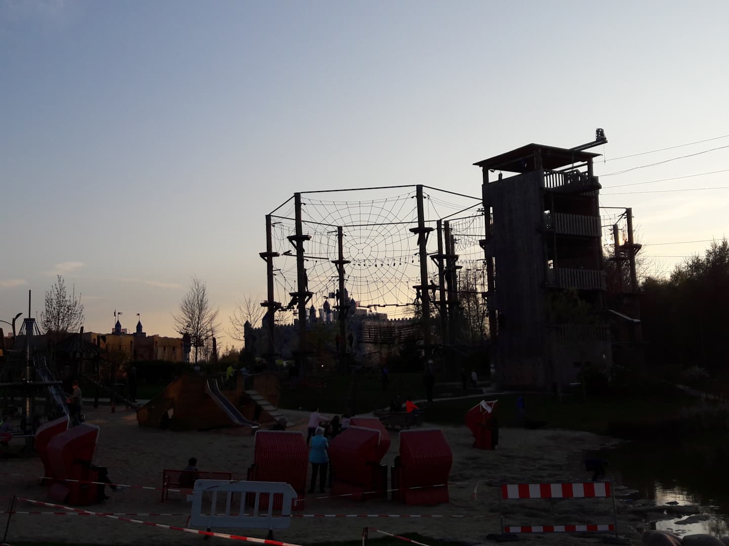 Spielplatz mit Sandstrand beim Teich und Klettergarten