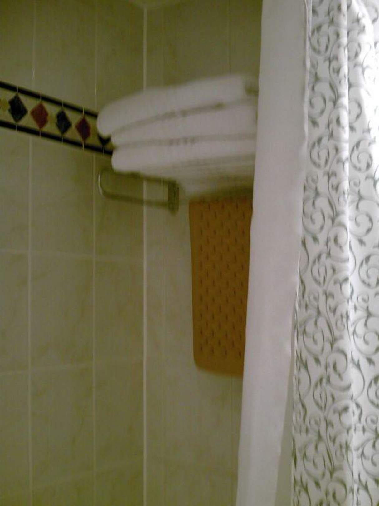 Die Handtücher befanden sich in der Dusche hinter dem Duschvorhang rechts