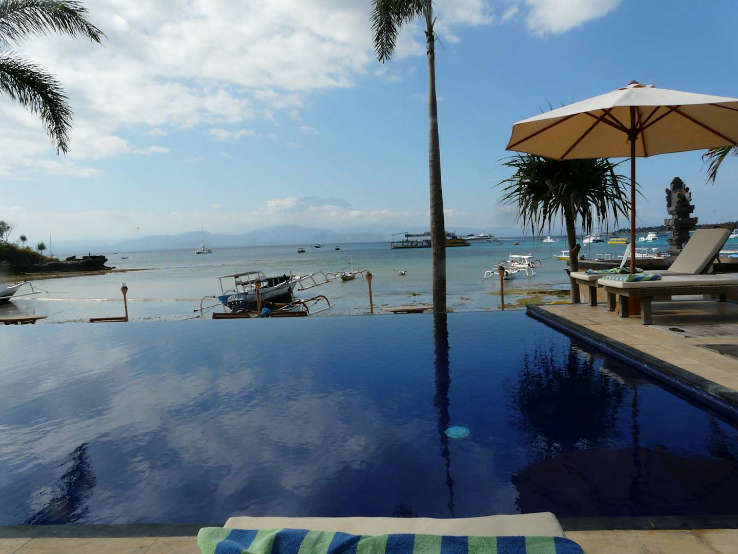Überlaufpool mit Blick auf 's Meer und den Vulkan