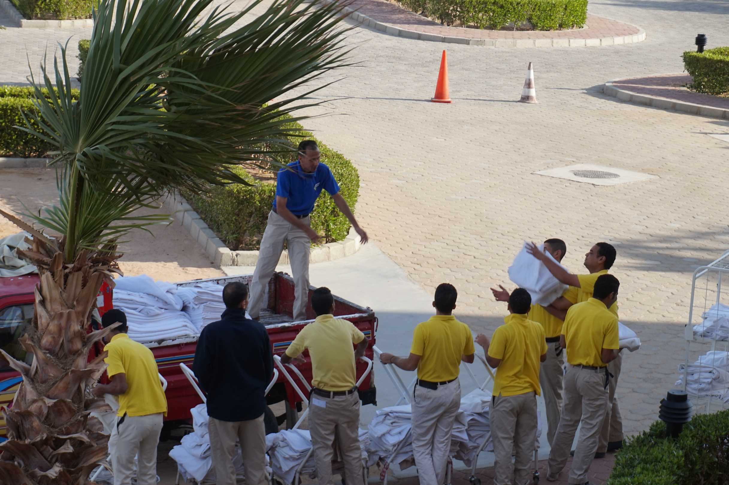 Zimmer Gartenseite wir konnten beobachten wie die gereinigten Handtücher vom Auto geworfen wurden und einige in den Dreck flogen, aufgehoben und zu die sauberen Handtücher mit auf den Handtuch-Wagen gelegt & ab zu den Hotel-Gästen!