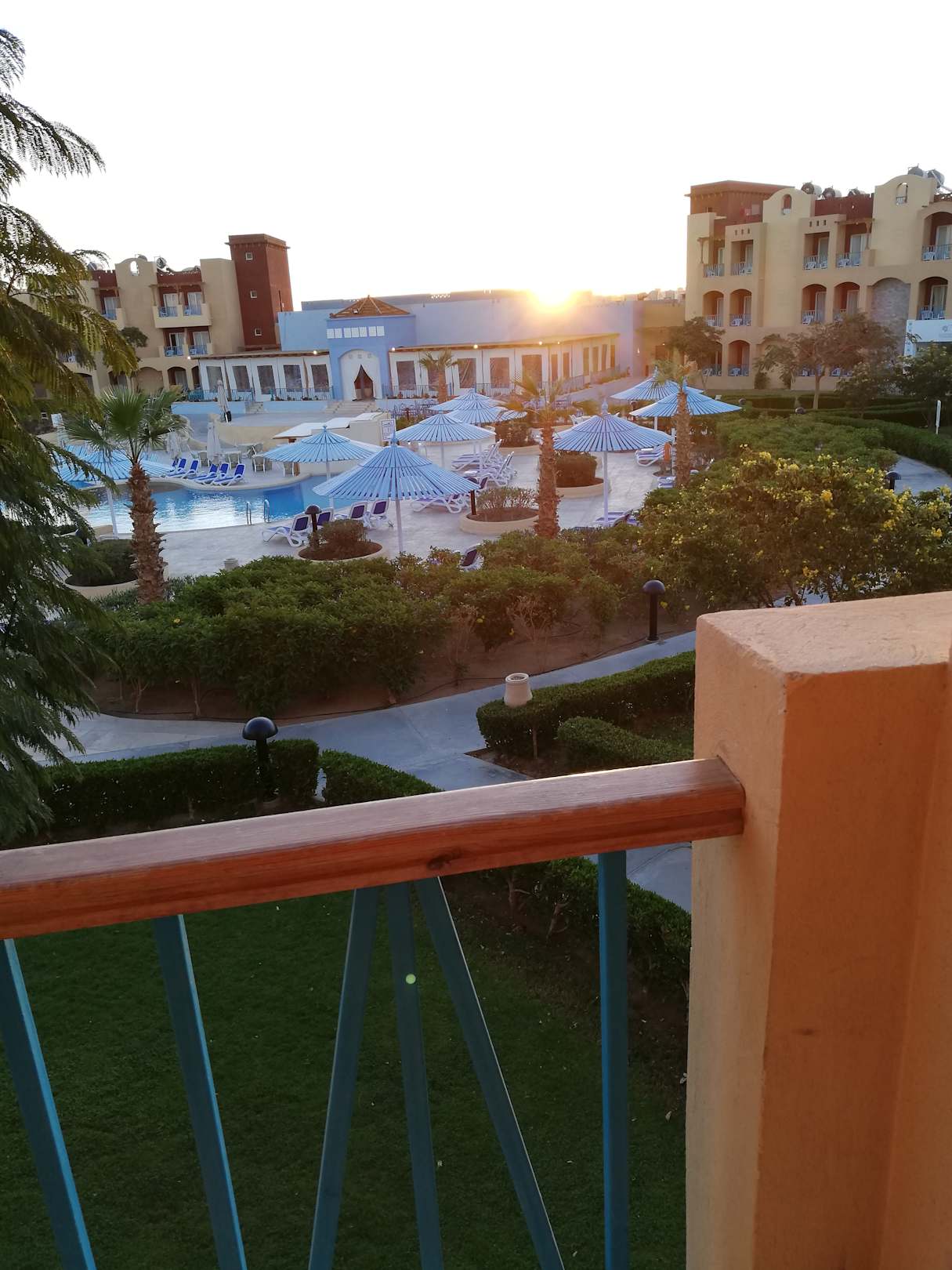 Sonnenaufgang mit Gartenanlage