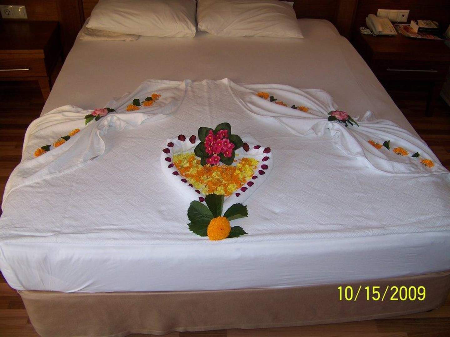 Dekoration unseres Bettes mit Blumen