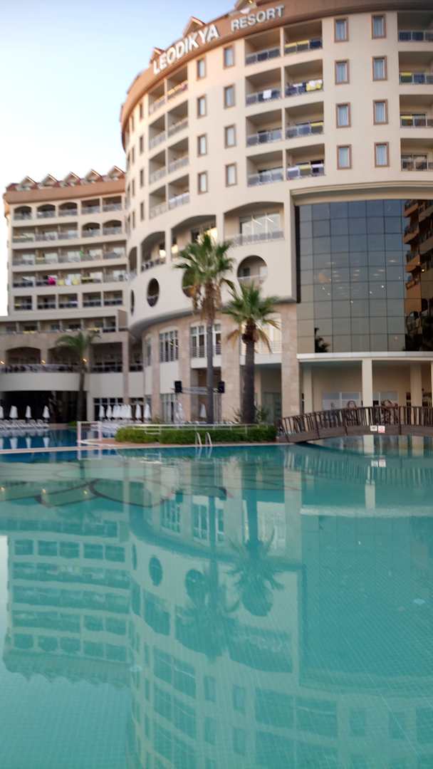 Hotel spiegelt sich im glasklaren Pool