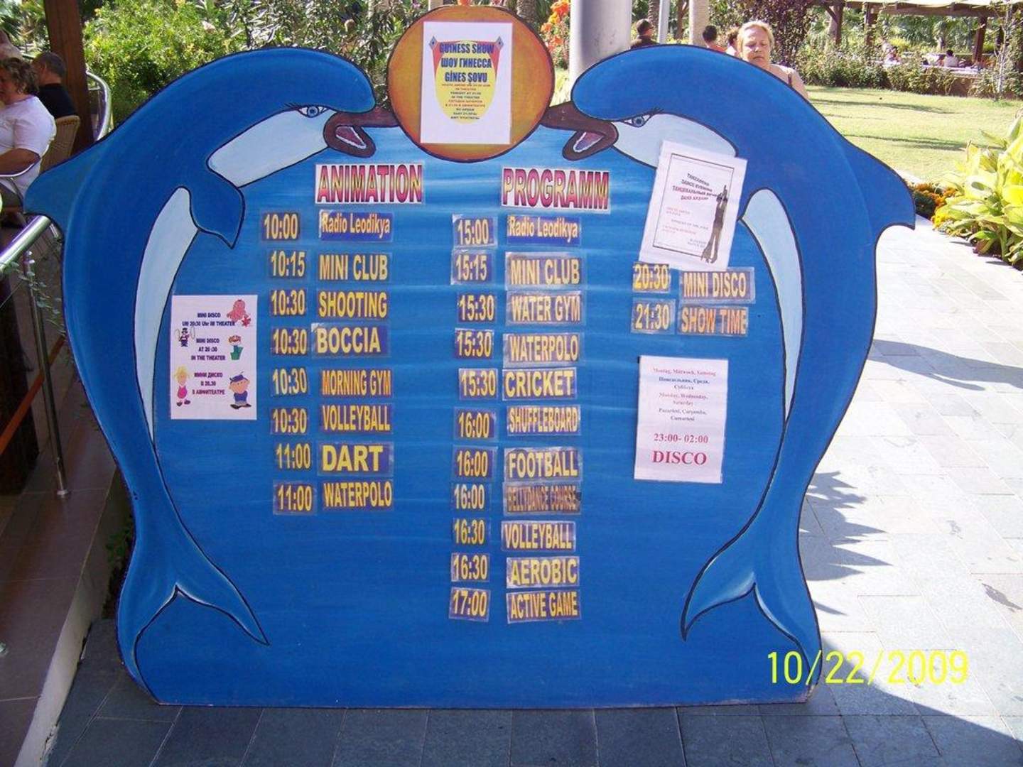 Tafel der Animation mit dem Tagesprogramm