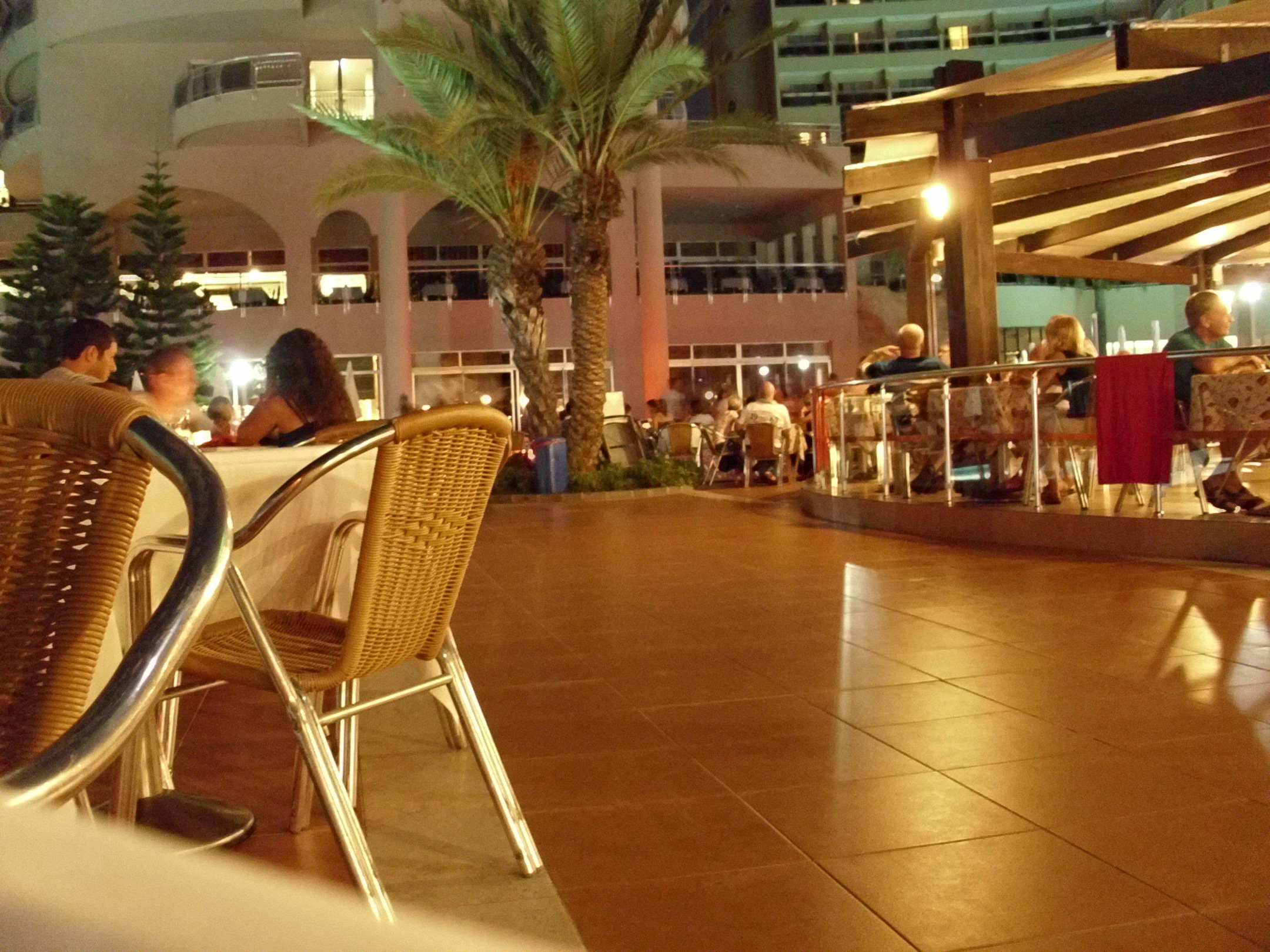 Abends Blick von Strandbar zum Hotel - PoolAbends beim gemütlichen Bier. Aussen an der Strandbar, Blick zum Hotel.