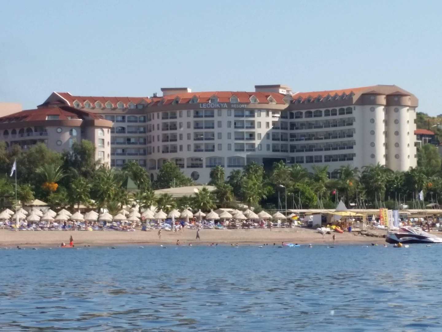 Blick vom Meer auf Hotel