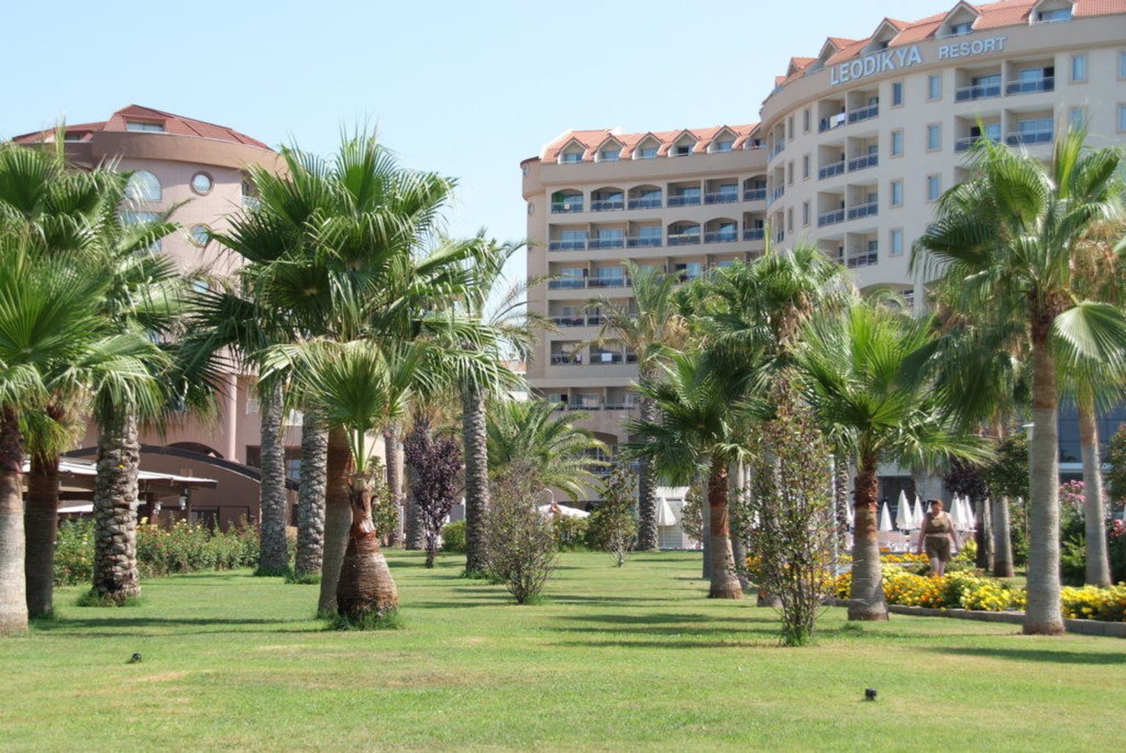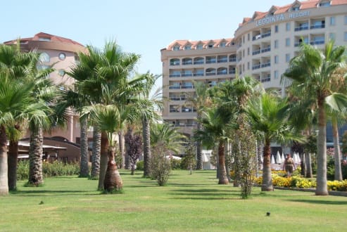 Garten mit Blick auf das Hotel