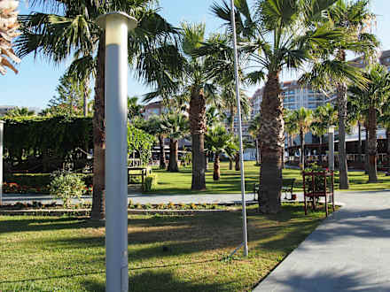GartenanlageGartenanlage mit Blick auf die Chardak Behausung links, auf die Poolbar hinten rechts und das Hotel.