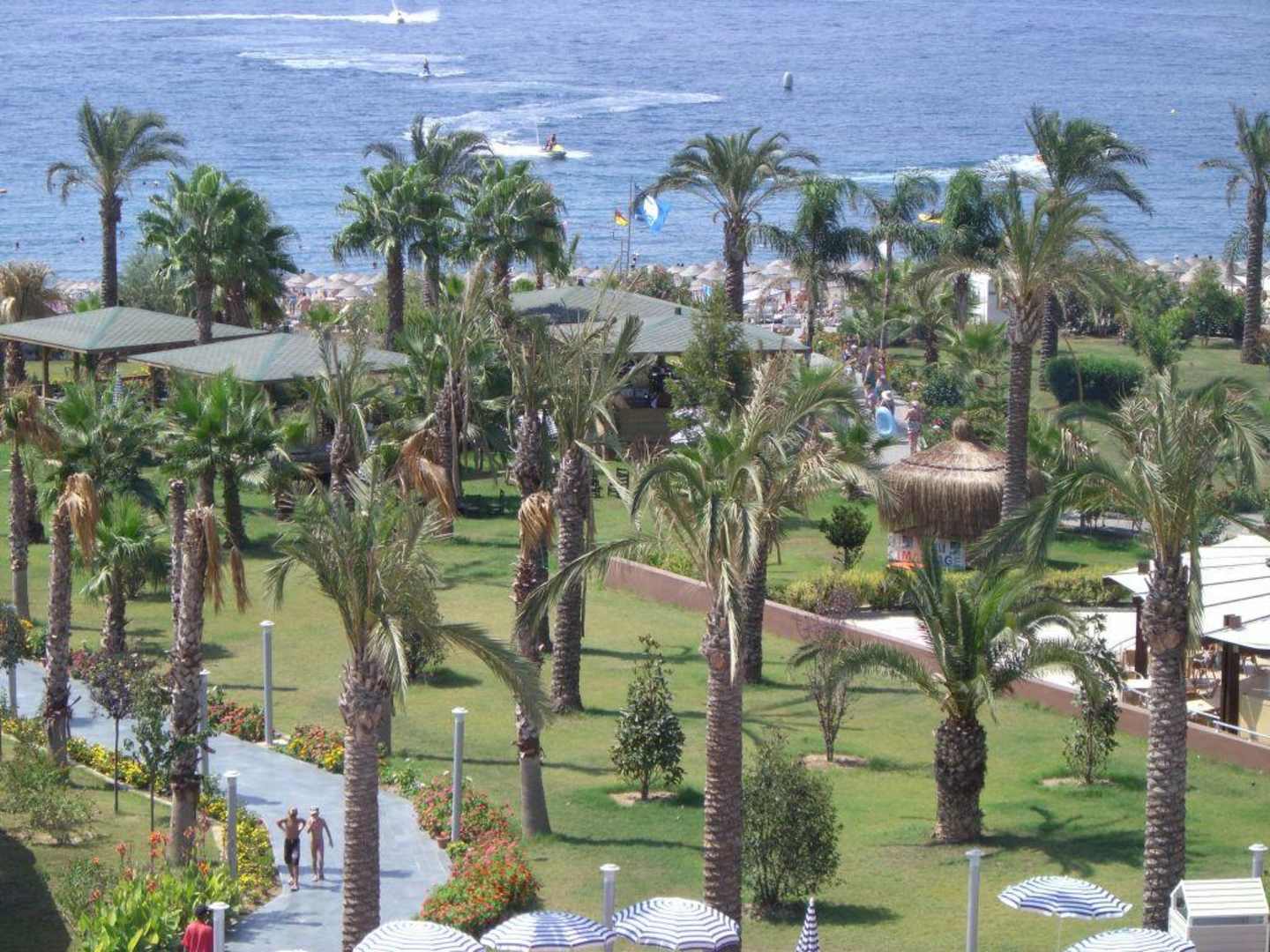Gang durch den Garten voller Palmen zum Strand