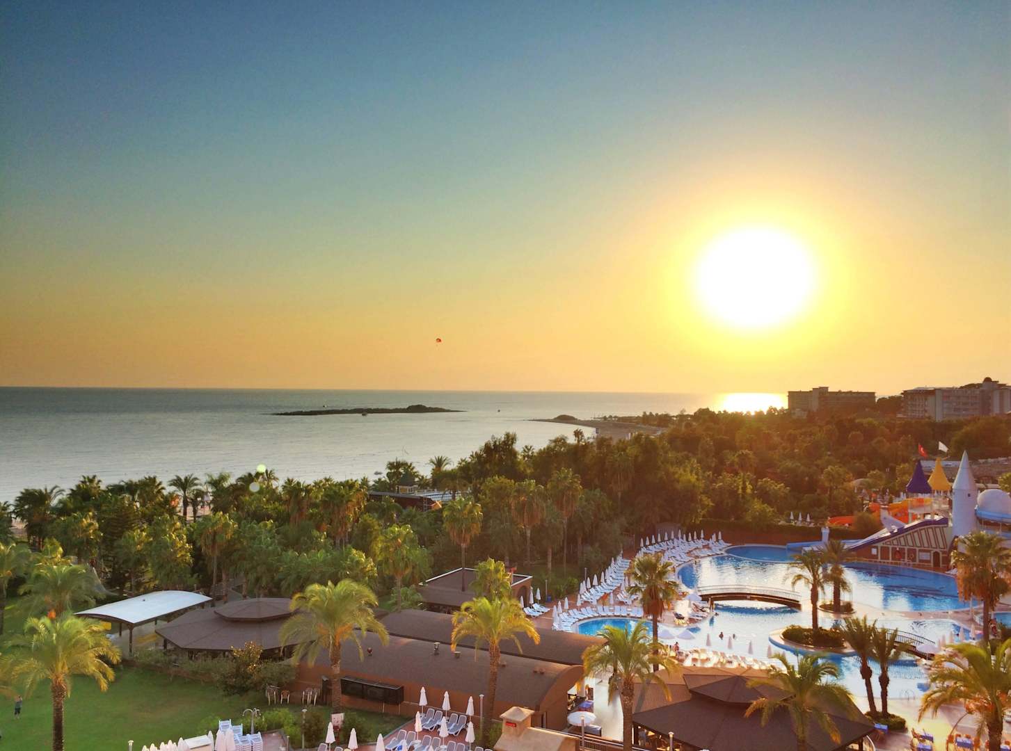 Blick vom Hotelzimmer auf den Sonnenuntergang