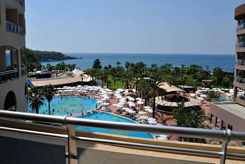 Blick vom Balkon auf den Pool