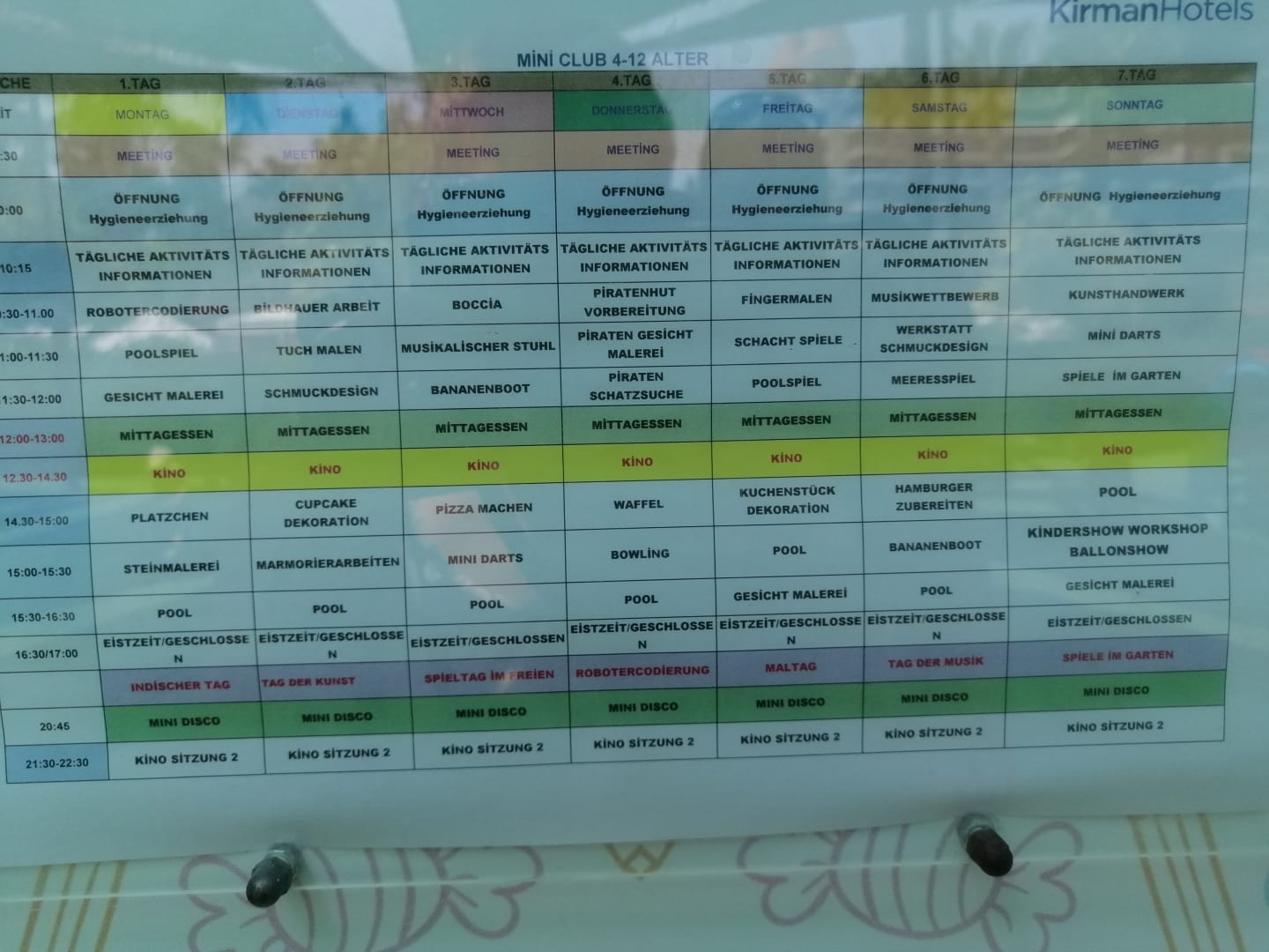 Aktivitätenplan des Miniclub