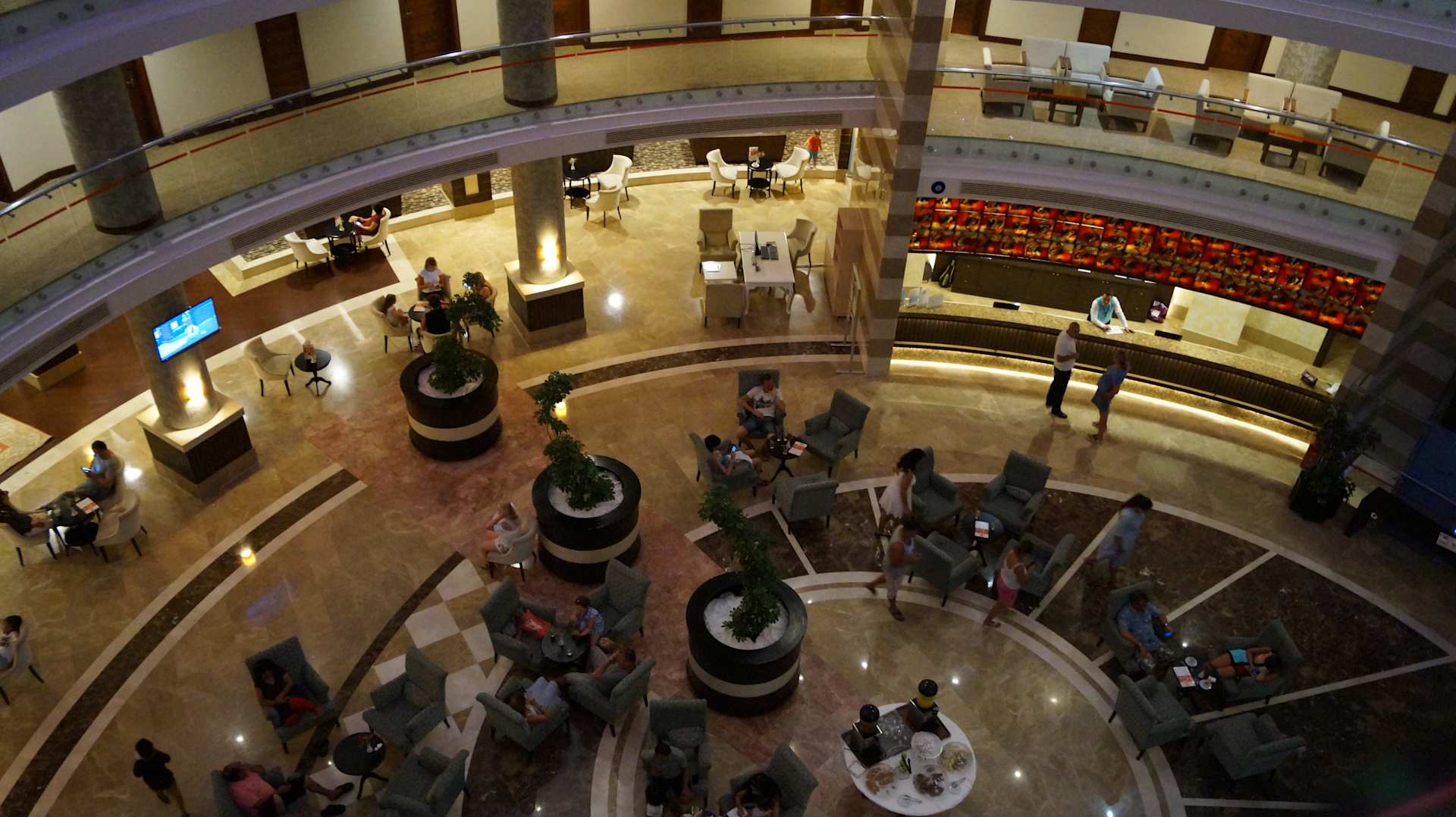 LobbyBlick in die Lobby mit Lobbybar und Sitzgelegenheiten