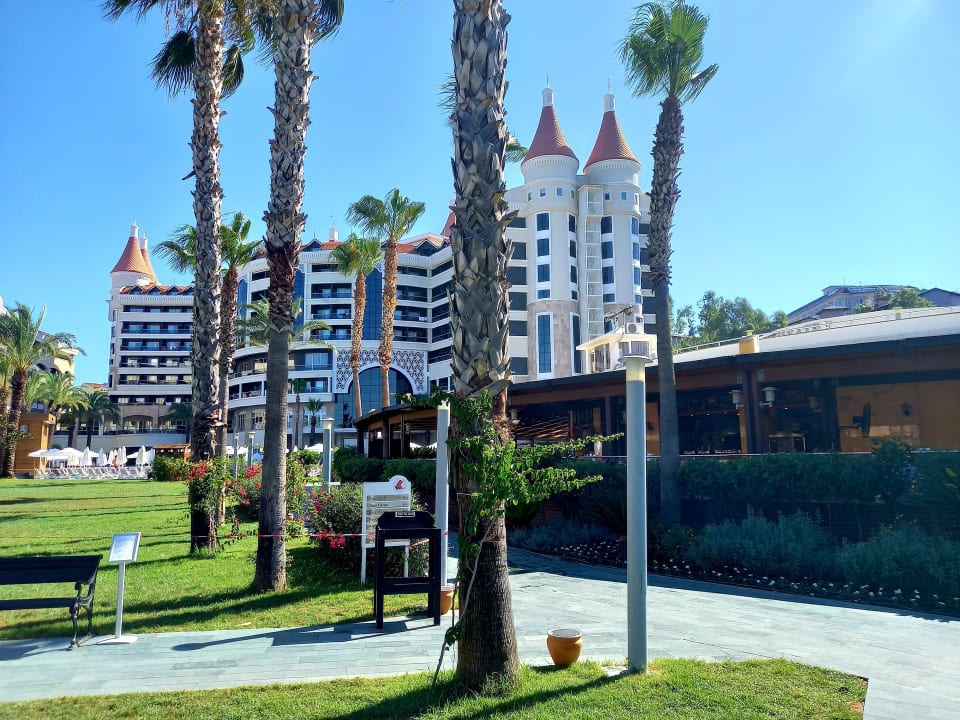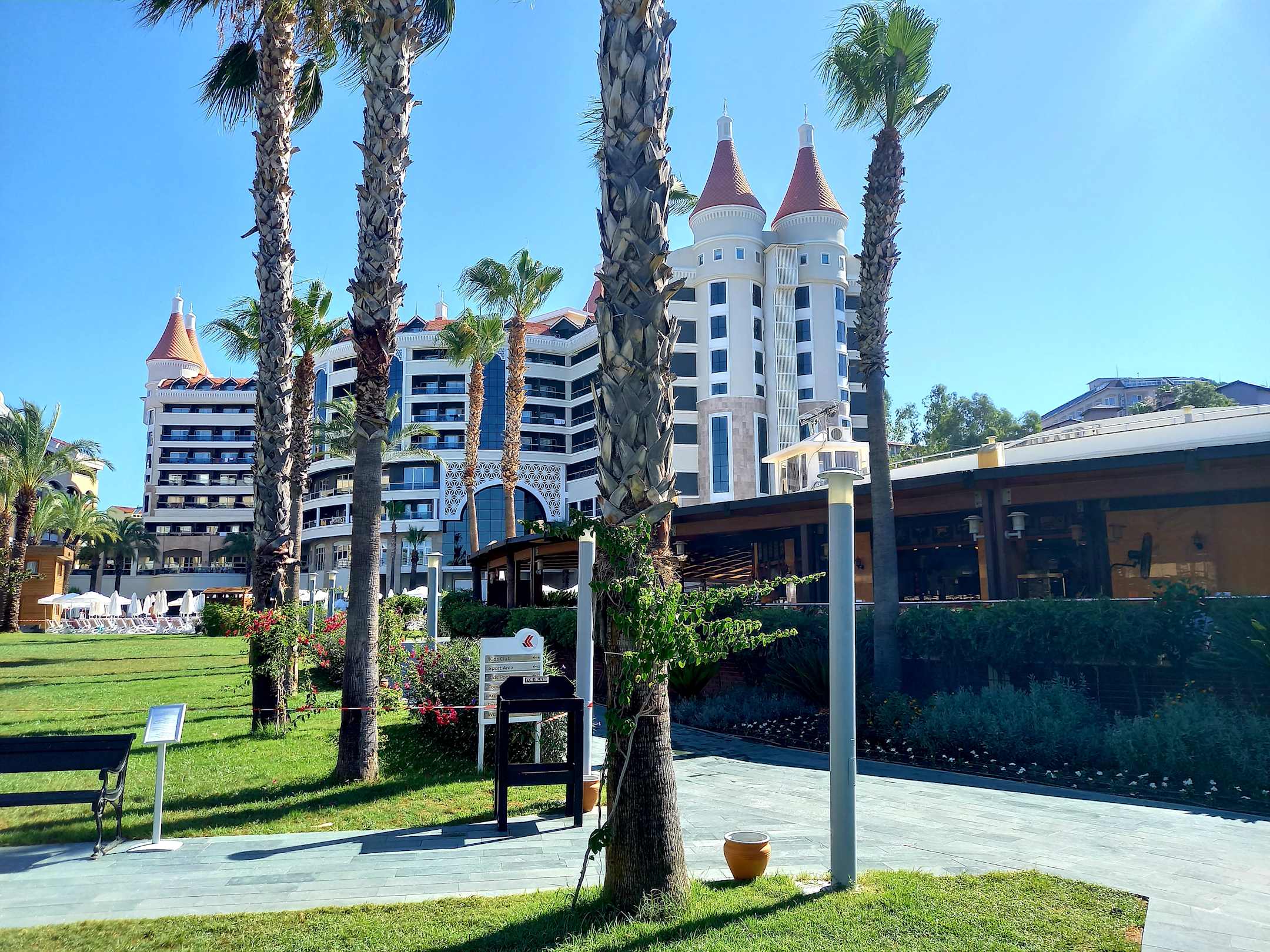 Das Leodikya-Hotel vom Garten aus fotografiert.