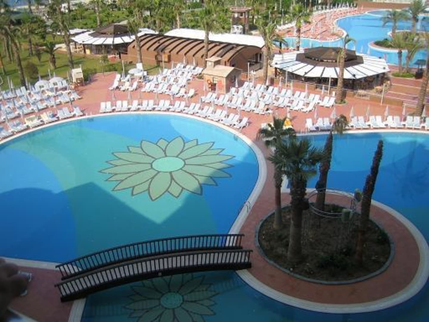 Blick vom Zimmer auf den Pool