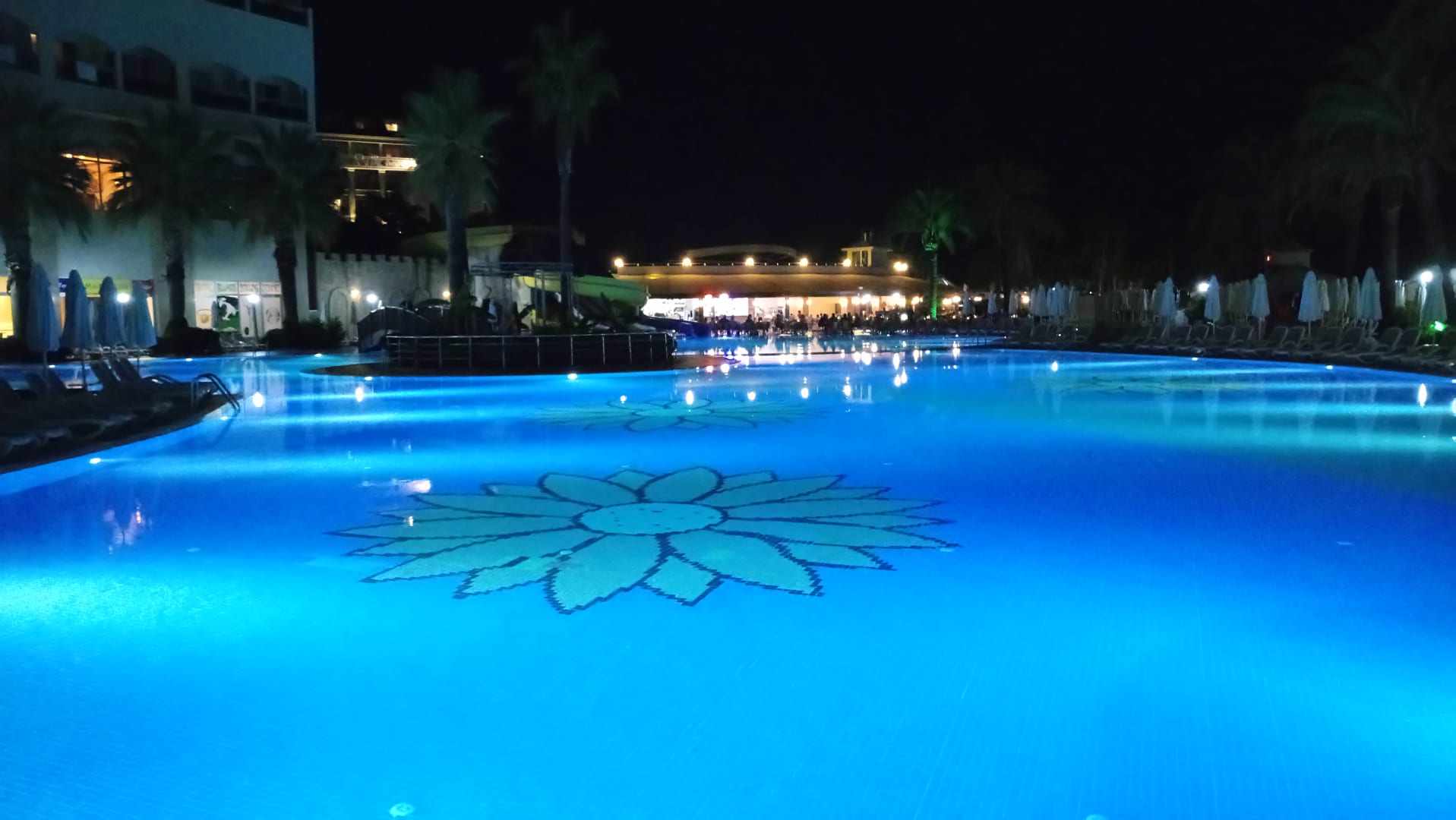 Pool am Abend , Sicht Richtung Poolbar