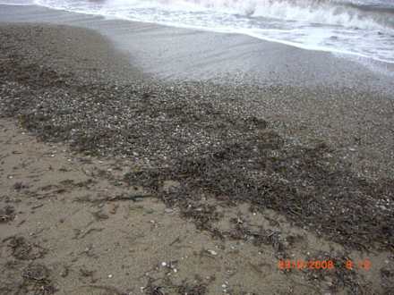 diese Algen werden dann von den Wellen an den Strand geschwemmt...