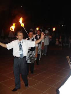 Einige Köche marschieren ins Theather. Festlich! Auch der Musical Abend.