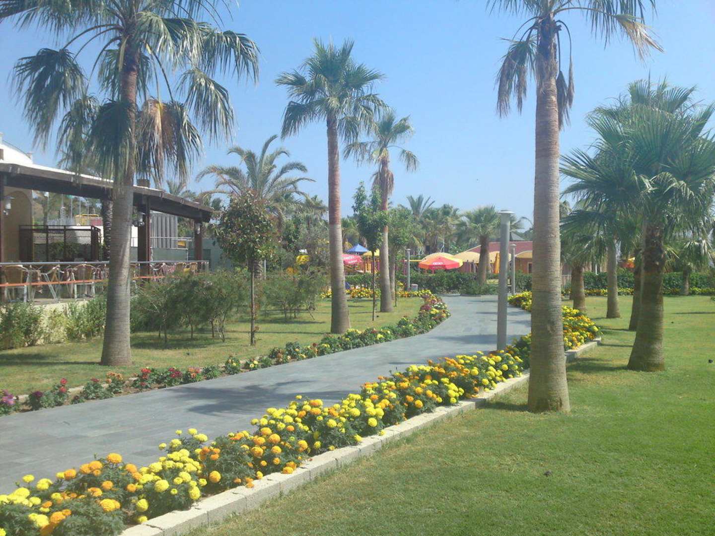 Garten und links gibts auch Mittagsbuffet
