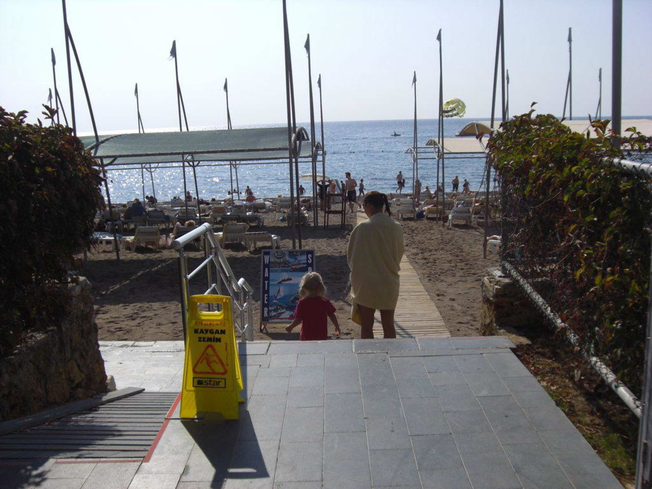 Nach ca. 50 Metern durch den Garten kommt man am Hotelstrand an.