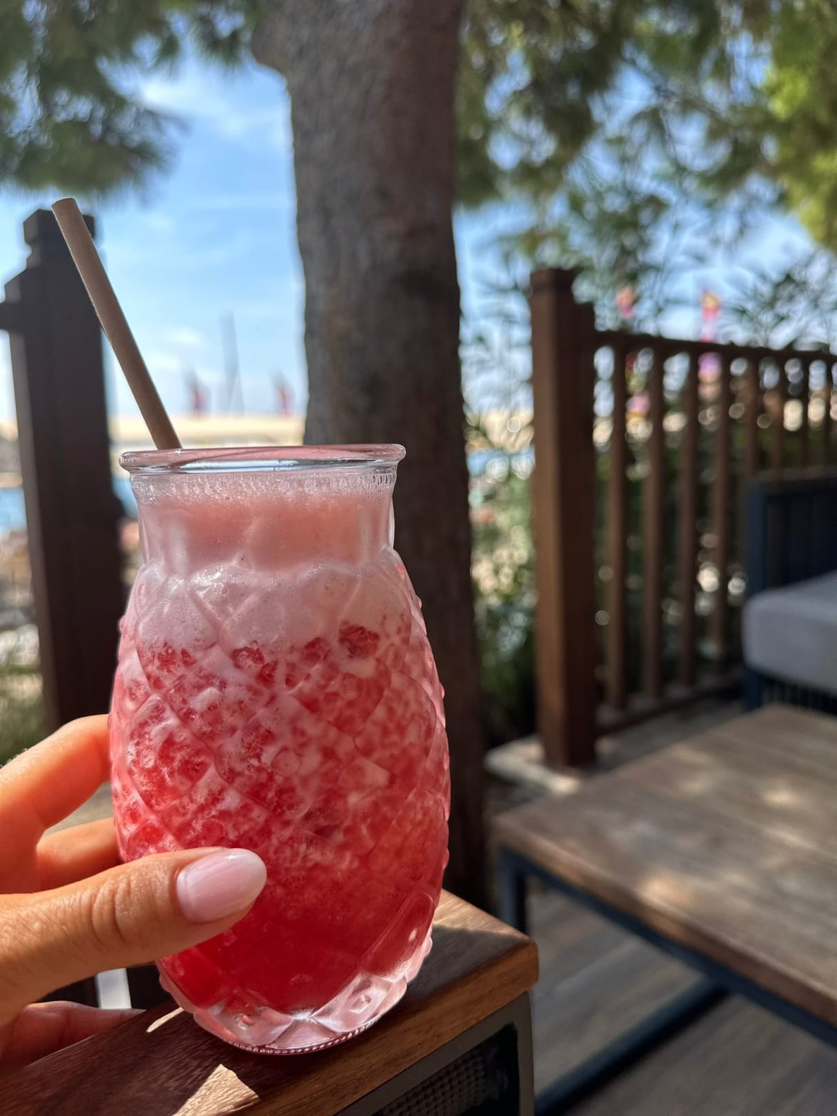 Das Genießen leckerer Cocktails von der Strandbar mit sehr nettem und unterhaltsamem Personal.