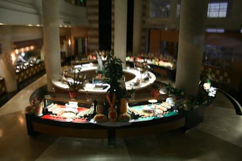 Buffet, gut einsichtig vom Glaslift aus
