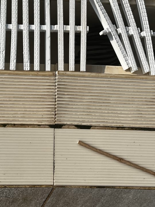 Großer Pool, Strohhalme am Beckenrand und überall zerbrochene Ablaufgitter