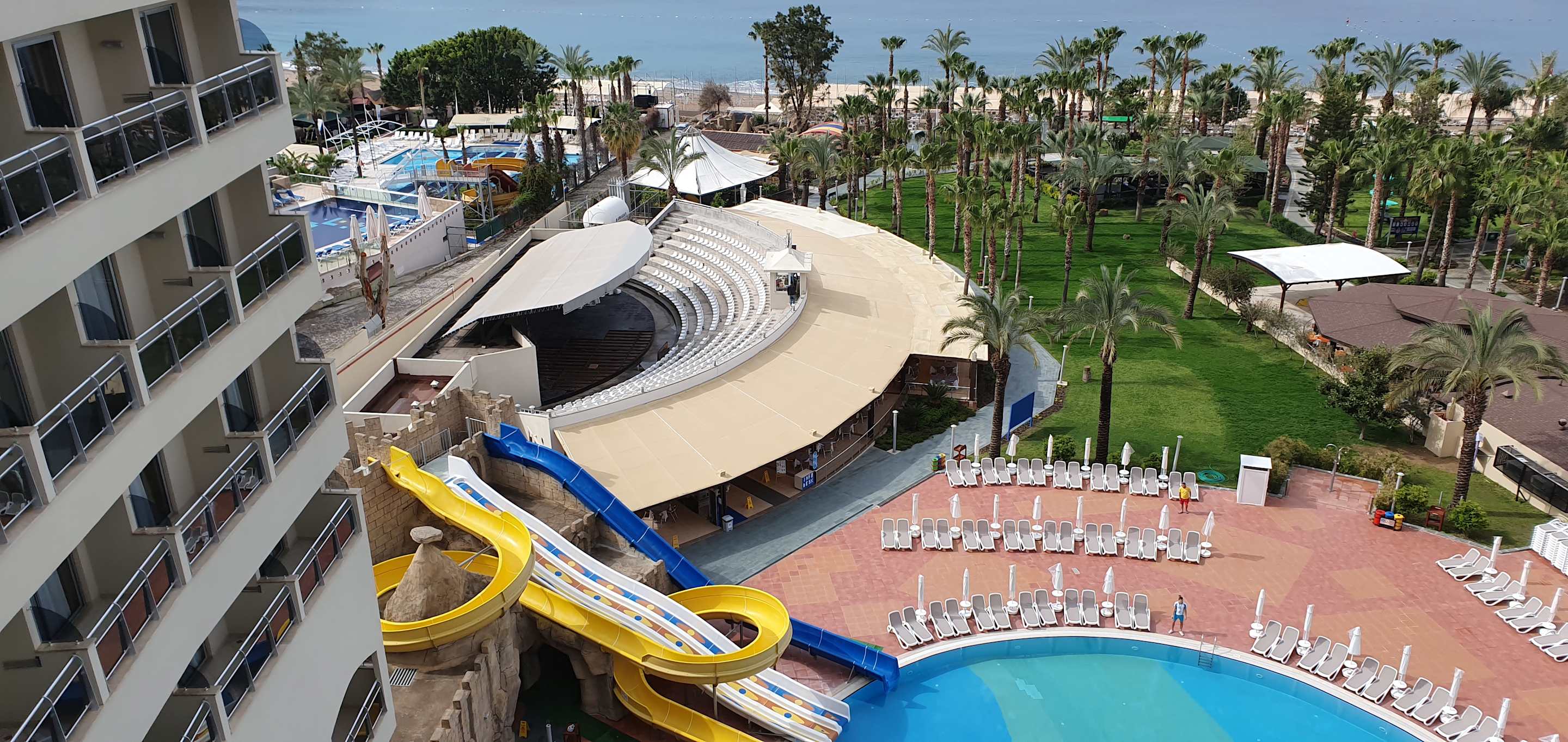 Blick vom Zimmer auf den Pool