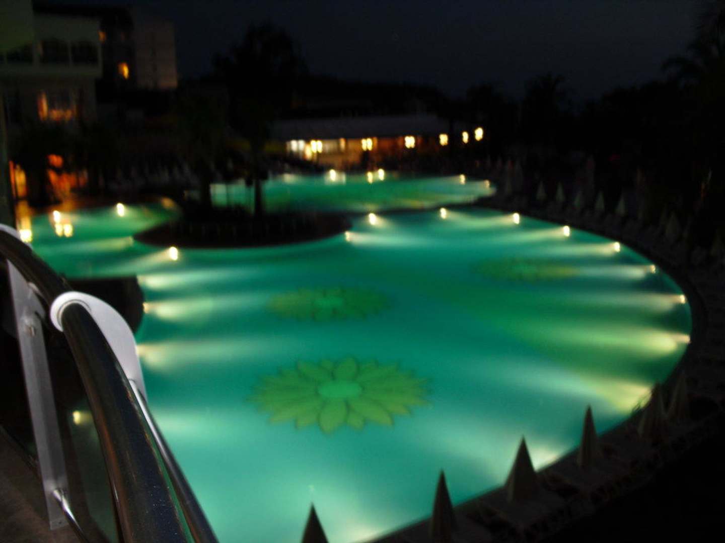 Poolanlage am Abend
