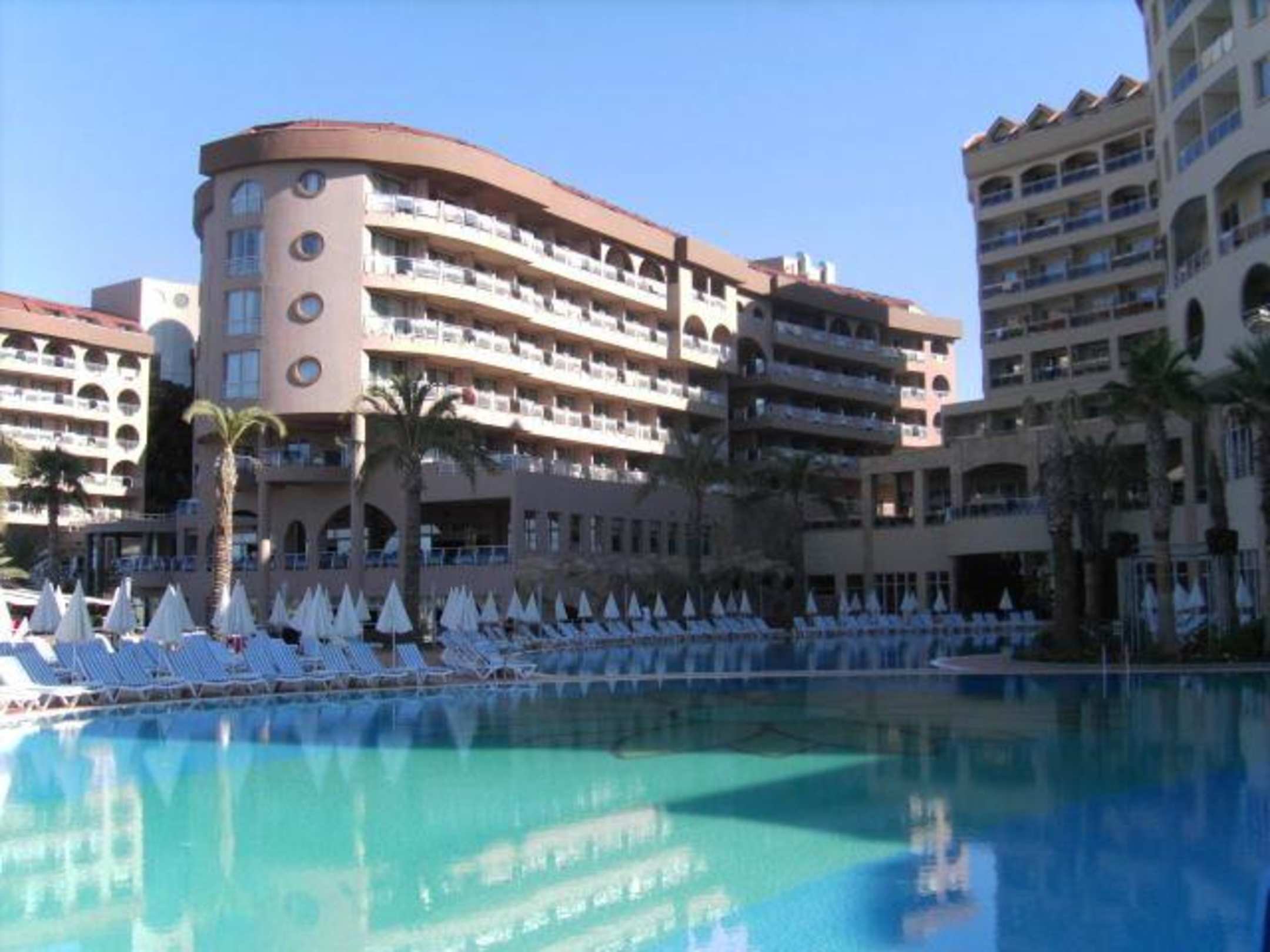 Das Schwester Hotel Arycanda und das Leodikya vom Pool gesehen