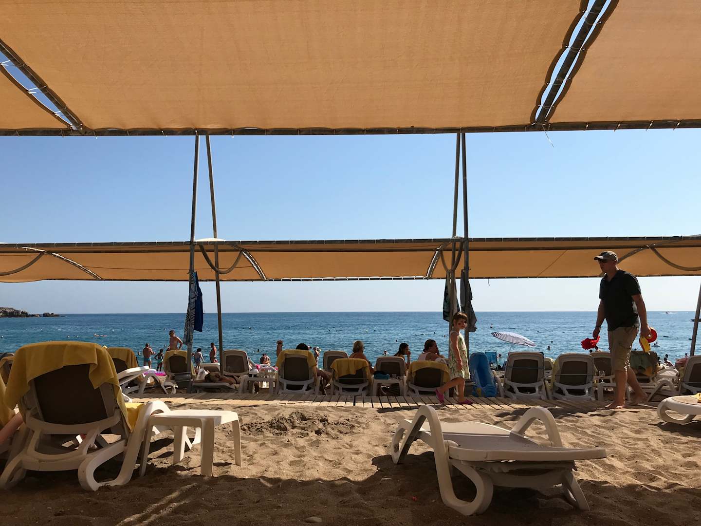 StrandAm Strand sind ausreichend hoteleigene Liegen vorhanden, die Überdachung spendet großflächig Schatten