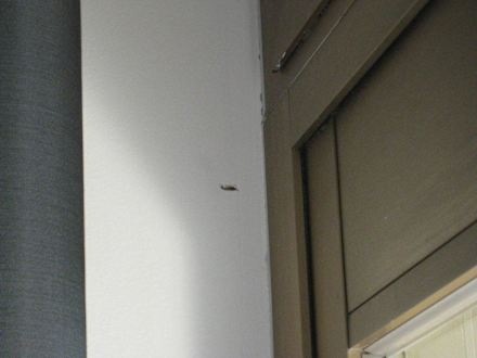 Spinnwebe mit totem Tierchen vorm Balkon