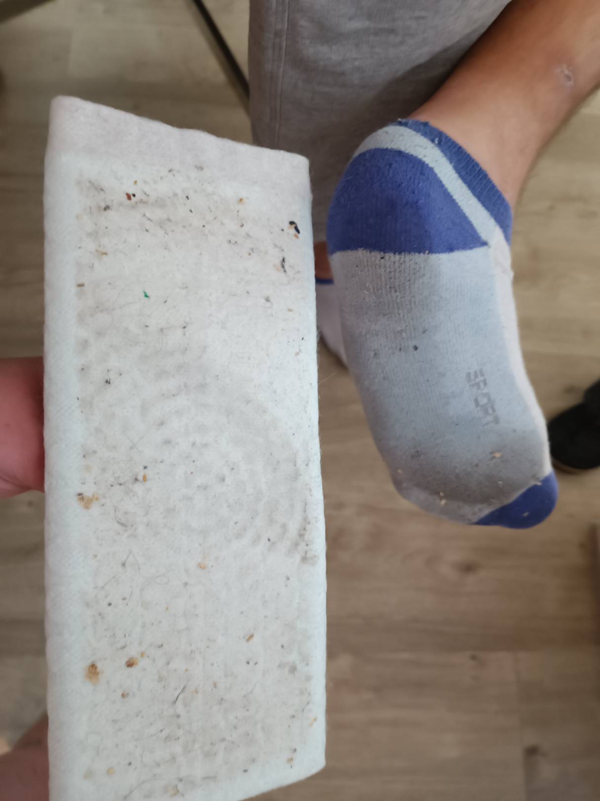 ZimmerSie Putzen ohne Wasser ich habe nicht einen Tag einen Wasser Eimer gesehen und so sahen am ersten Tag die Socken aus