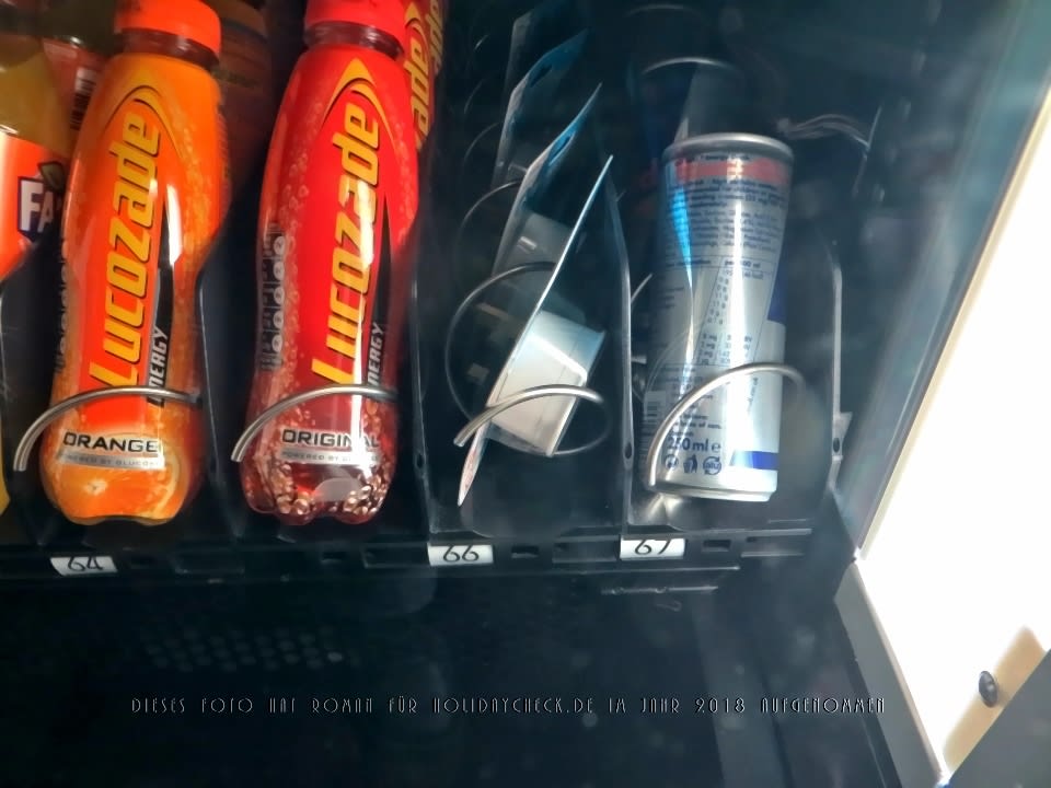 Die Nummer 66 in diesem Getränkeautomaten ist kein Getränk, sondern ein Stromstecker-Adapter für irische Strom-Steckdosen auf euröpäische Stromstecker. Diesen Service bieten viele Hotels in Irland.