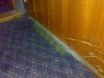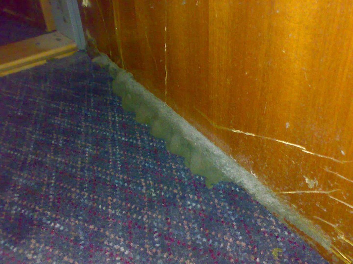 Das Bild zeigt die Innenseite der Verbindungstür eines Familienzimmers. Schimmel und Dreck an der ganzem Tür. Holiday Inn Ratingen - nie wieder